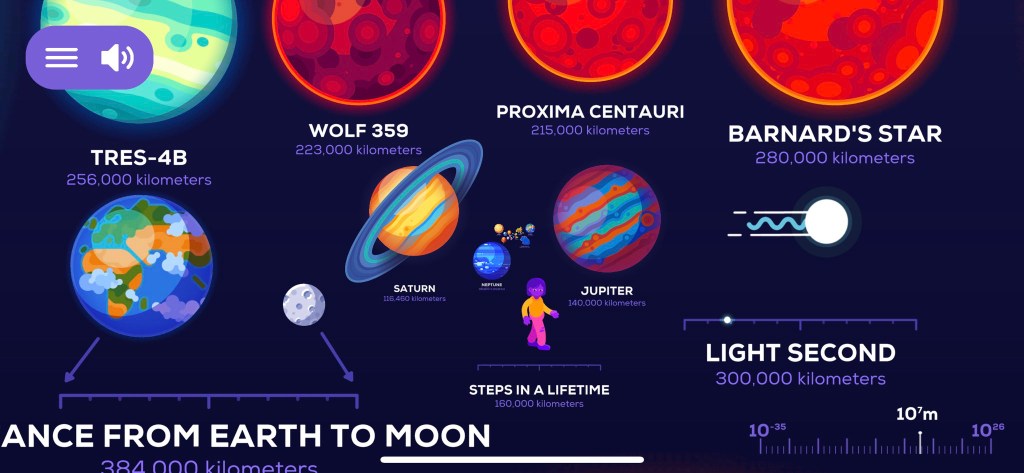 I paid $3 for an app recently. I never pay for apps. It was the best $3 ever spent. It’s called Universe and is a joint project between waitbutwhy and kurzgesagt, which is basically a visual illustration of the many things that we know make up life from the tiniest neutrino to the whole observable universe. That’s it, you literally just zoom in and out and see cartoon representations of different matter (which you can click on to learn more of).  And it’s the best thing ever. It’s an app that gives you perspective. What a delightful gift.